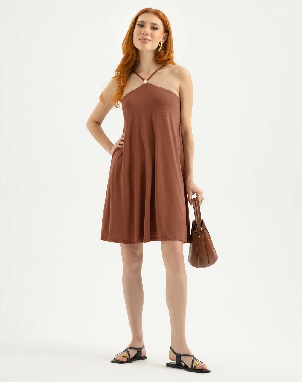 O macaquinho vestido em viscose une estilo e praticidade em uma única peça. Sua modelagem solta cria movimento leve e confortável, enquanto o decote halter valoriza os ombros com charme sofisticado. As alças reguláveis garantem ajuste perfeito ao corpo, proporcionando ainda mais versatilidade. O detalhe interno em shorts acrescenta segurança e liberdade nos movimentos. Ideal para dias quentes, é a escolha certa para ocasiões casuais que pedem um visual despojado, elegante e atual.