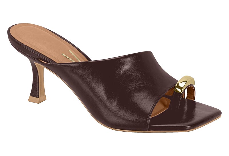SANDÁLIA VIZZANO SALTO FINO BICO QUADRADO APLIQUE DOURADO DEDO