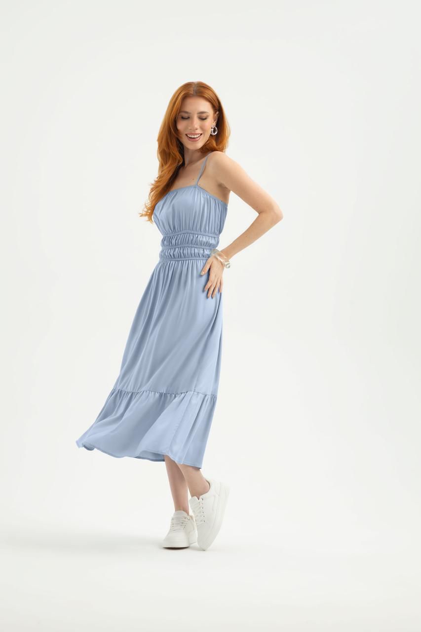 Com design moderno e feminino, este vestido midi em viscose combina conforto e estilo em um único modelo. Sua modelagem valoriza a silhueta com efeito acinturado proporcionado pelo detalhe de lastex no corpo, criando um caimento leve e delicado. As alças reguláveis garante praticidade e ajuste perfeito, enquanto a barra com babado franzido adiciona movimento e charme. Versátil e cheio de personalidade, é ideal para ocasiões casuais chic ou encontros descontraídos que pedem elegância sem esforço.